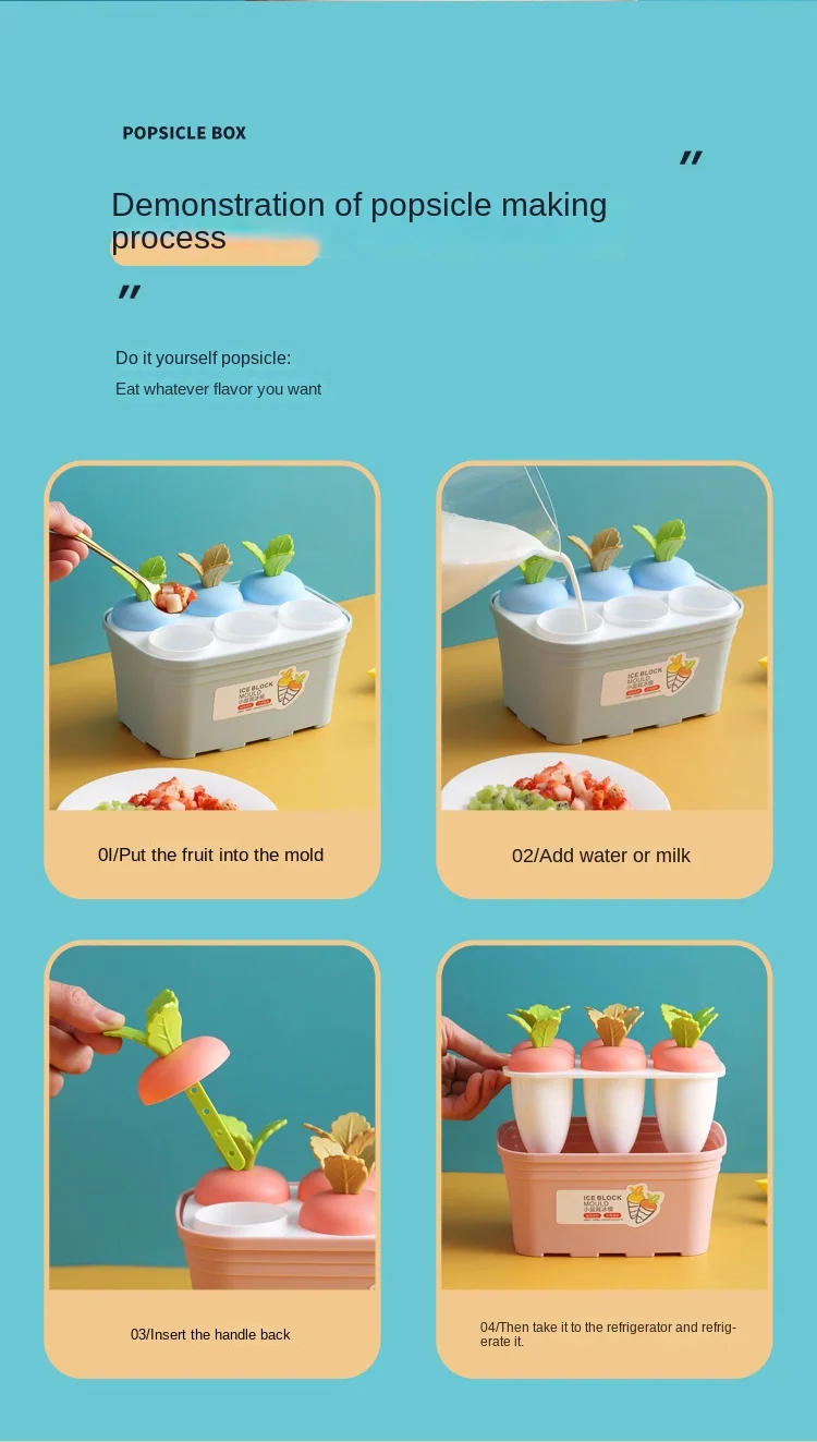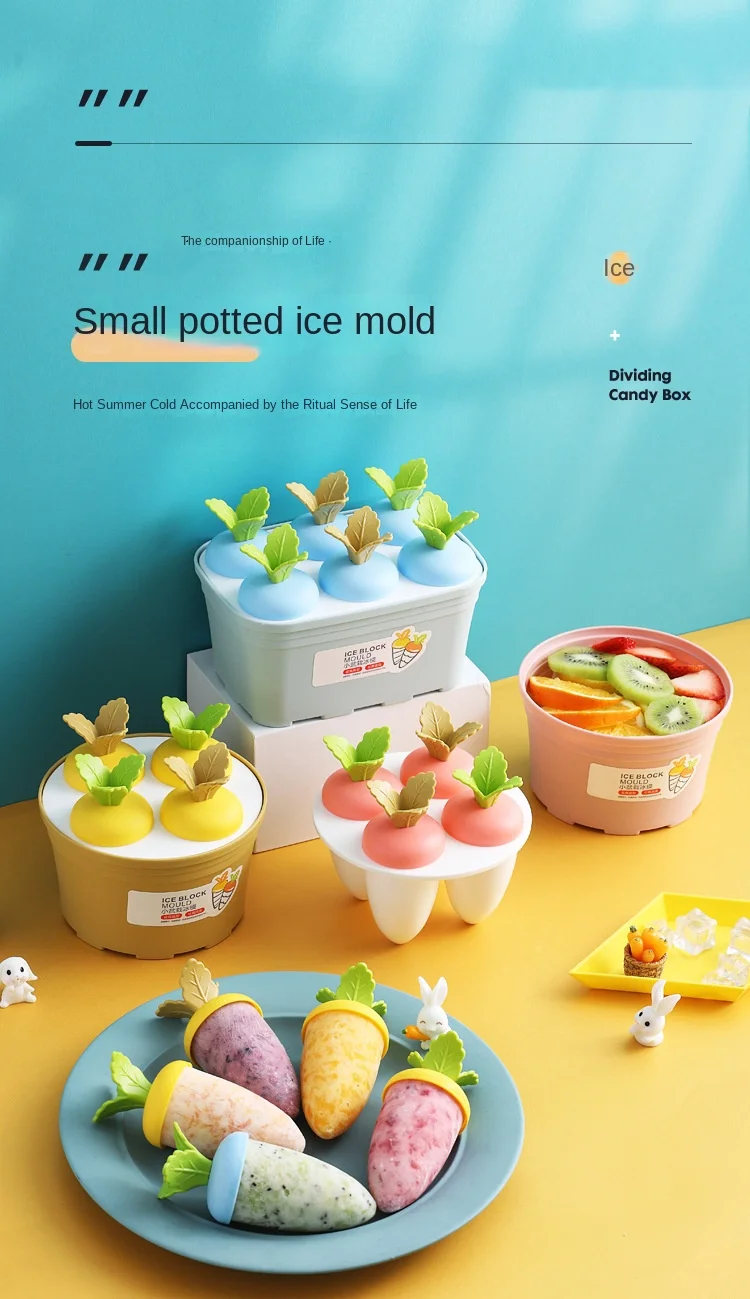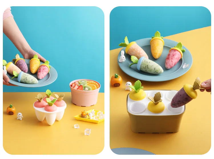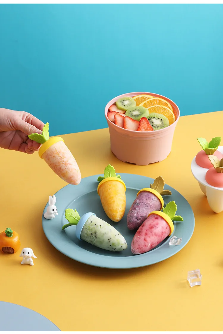 Product Name: Hot selling Creative Cute Carrot shaped 6-grid Ice Cream Ice Cream Ice Grid Health, No Odor, Easy to Clean DIY Ice Stick Making Mold