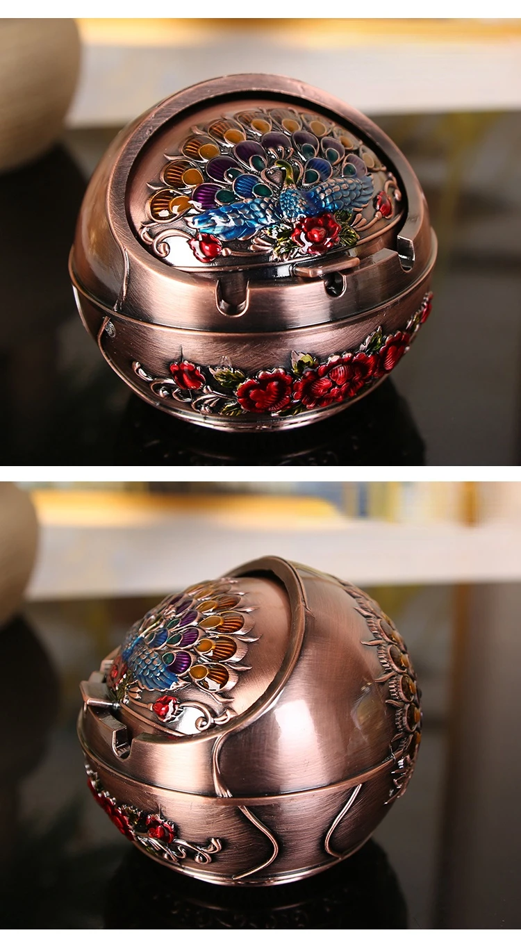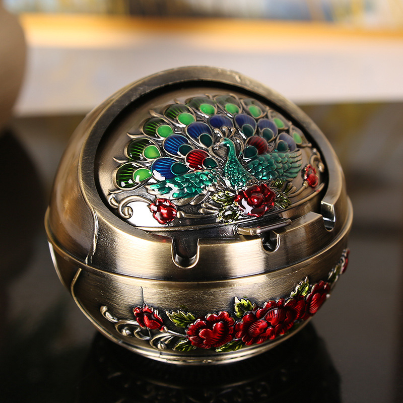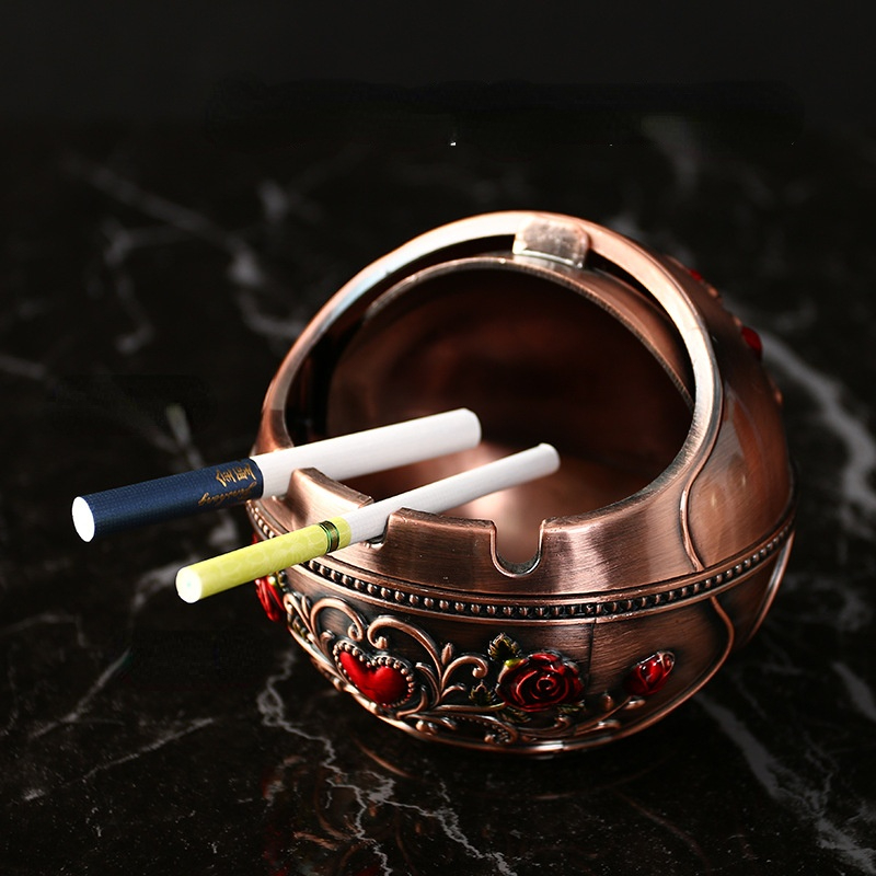 Retro Home Ashtray Creative Personality with Cover Metal Multi-function Office Living Room Anti-flying Ash Decoration Gift